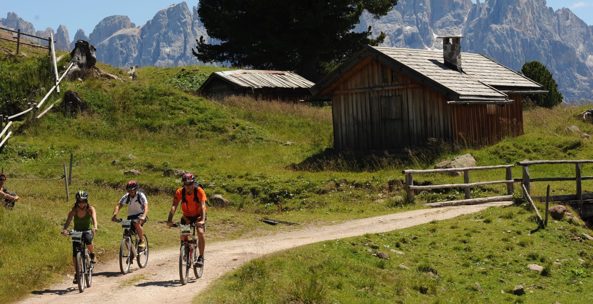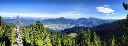 Eine sonnige Terrasse vor der Lagorai-Bergkette, wo Sie außerdem die mächtige Palagruppe betrachten können
