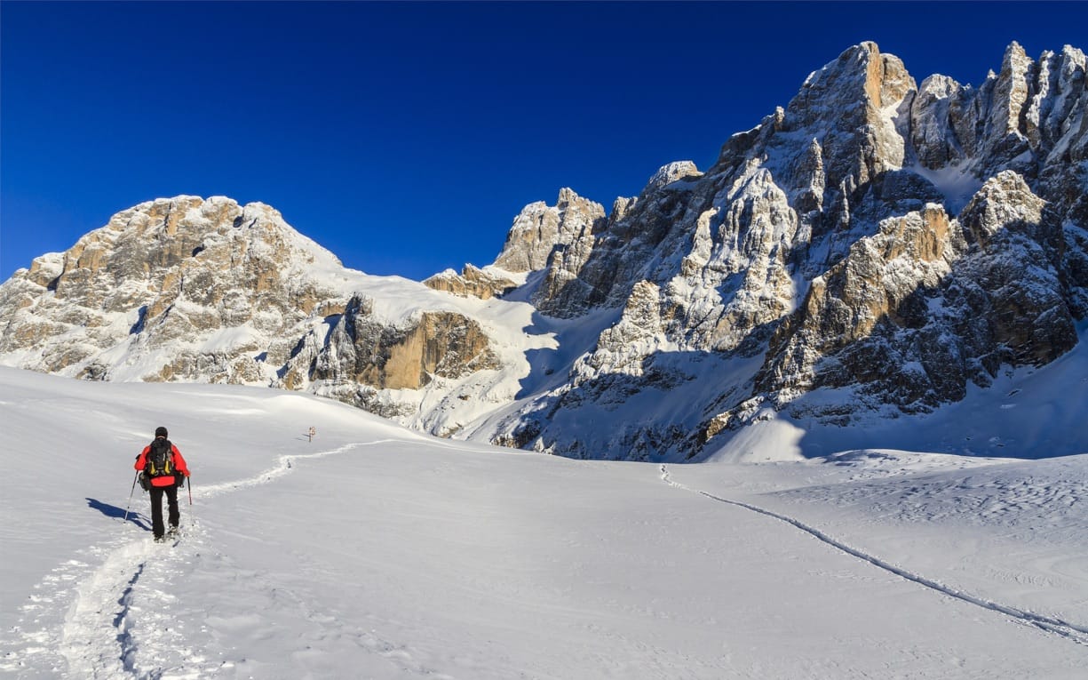 Das Fleimstal ist der perfekte Ort für diejenigen die gerne mit den Schneeschuhen gehen oder Skibergsteigen machen