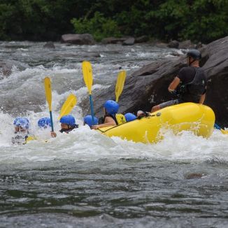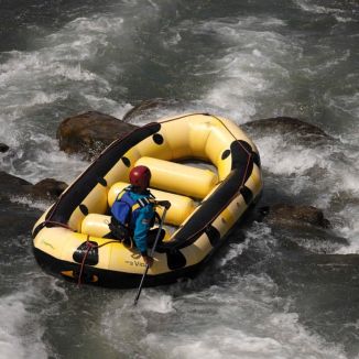 Lives and tackles the rapids of the river Avisio with expert qualified guides